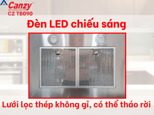 Máy hút mùi Canzy CZ TB90 được bố trí 2 đèn LED với mỗi đèn có công suất 2W, cung cấp đủ ánh sáng cho bếp nấu, giúp bạn dễ dàng quan sát trong suốt quá trình nấu nướng.