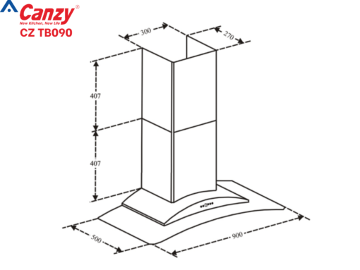 Máy hút mùi Canzy CZ TB90 được thiết kế dạng treo tường kính cong đẹp mắt với chất liệu thép không gỉ và kính cường lực chịu nhiệt, chịu lực siêu bền. Khách hàng có thể yên tâm độ an toàn của máy.