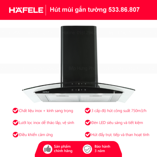 Máy hút mùi Hafele HH-WT70A (533.86.807) có thiết kế gắn tường