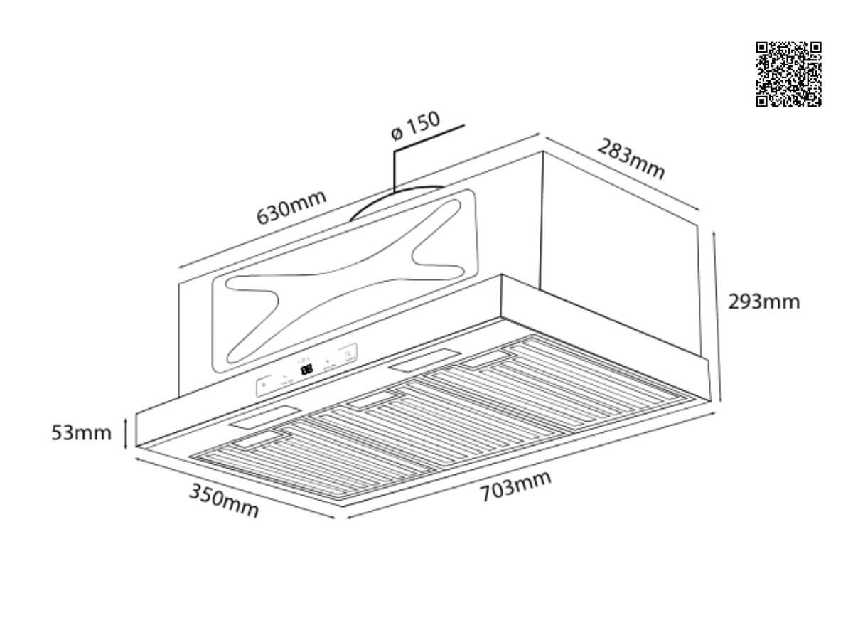 Máy hút mùi Turbo X-350N với thiết kế âm tủ 700 mm hiện đại, tối ưu không gian