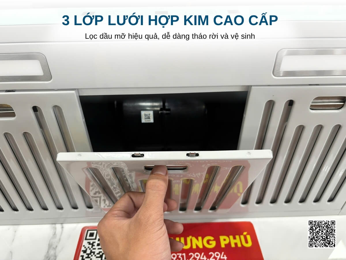 3 lớp lưới hợp kim cao cấp, lọc dầu mỡ hiệu quả