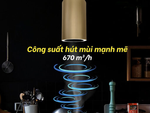Máy hút mùi Malloca K-382G thuộc dòng máy hút mùi đảo treo độc lập với thiết kế tối giản nhưng vô cùng sang trọng, thân máy được sơn tĩnh điện màu vàng Gold nổi bật, tăng thêm đẳng cấp cho không gian bếp.