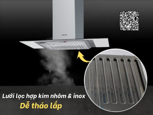 Máy hút mùi Malloca MC 9066 trang bị lưới lọc mỡ bằng hợp kim nhôm kết hợp inox, có tác dụng ngăn bụi bẩn và dầu mỡ xâm nhập vào bên trong, giúp đảm bảo hiệu suất hút và bảo vệ động cơ máy. Tấm lưới này được thiết kế có thể tháo rời để vệ sinh một cách dễ dàng.