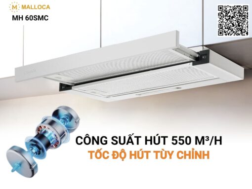 Máy hút mùi Malloca MH 60SMC thuộc dòng máy hút mùi âm tủ dạng kéo trượt đóng mở tiện lợi. Công suất hút 550 m³/h, giúp loại bỏ nhanh chóng và hiệu quả khói mùi khi nấu nướng. Hệ thống điều khiển công tắc dễ dàng sử dụng, có thể điều chỉnh 3 tốc độ hút linh hoạt theo nhu cầu.