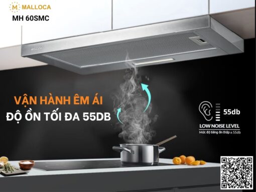 Máy hút mùi Malloca MH 60SMC cho hiệu quả hút mùi tốt nhưng vận hành khá êm ái, nhẹ nhàng, độ ồn tối đa ở mức 55dB. Đảm bảo không gian yên tĩnh, dễ chịu, không gây tiếng ồn lớn ảnh hưởng đến các thành viên trong gia đình.