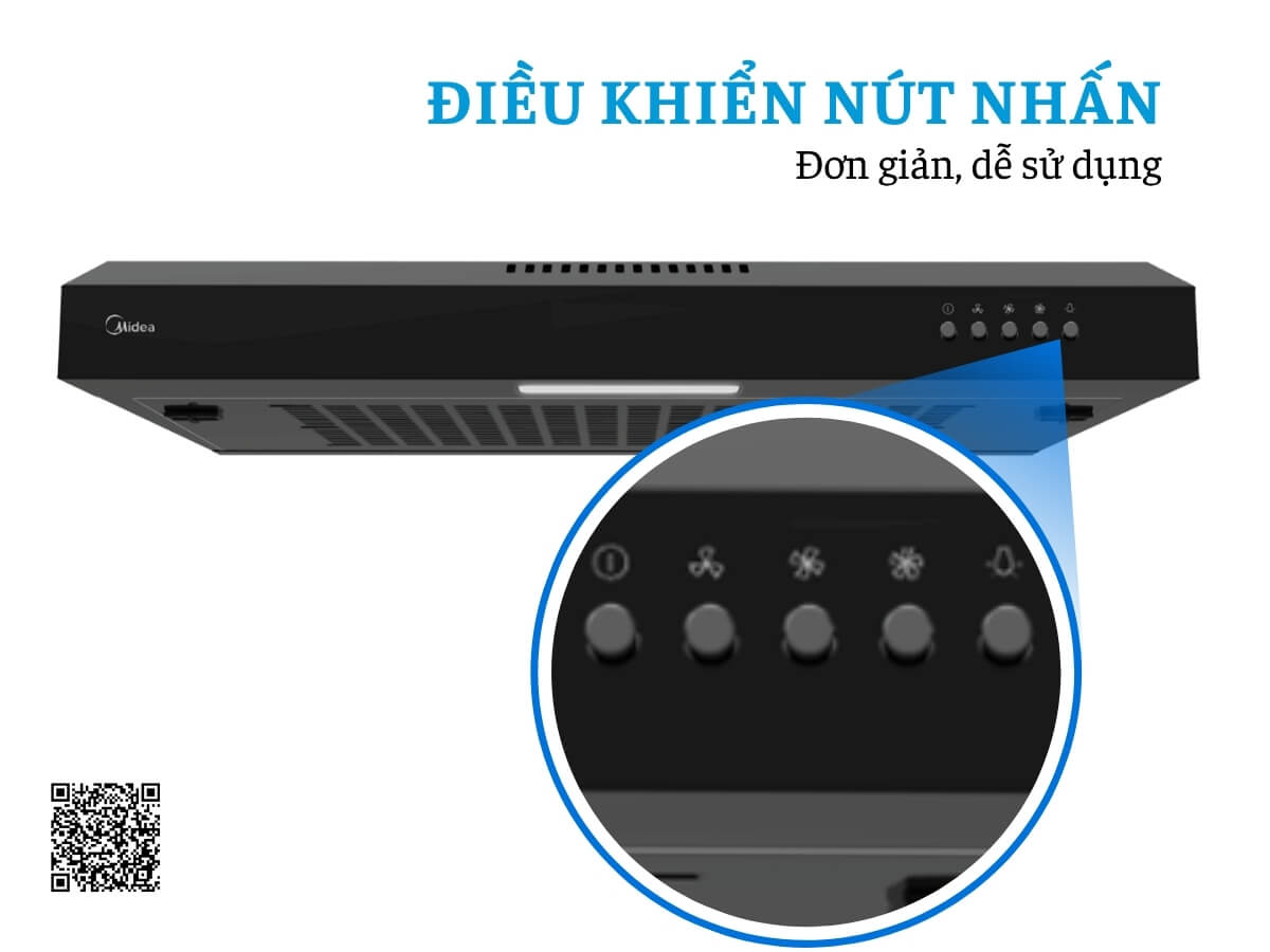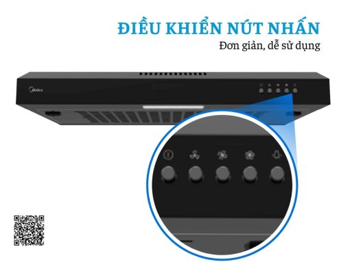 Máy hút mùi Midea MH60F17EM21BB-VN sử dụng bảng điều khiển nút nhấn cơ học. Thiết kế trực quan giúp thao tác nhanh chóng và đơn giản, ngay cả khi tay đang ướt hoặc dính dầu mỡ. Người dùng chỉ cần nhấn nút để chọn tốc độ hút hoặc bật/tắt máy, đảm bảo tiện lợi và an toàn trong quá trình nấu.