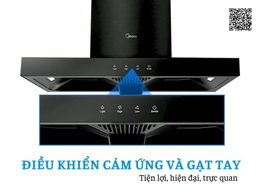 Máy hút mùi Midea MH90B81ET21BG-VN tích hợp bảng điều khiển cảm ứng chạm với biểu tượng màu trắng nổi bật, thao tác trực tiếp bằng ngón tay đơn giản và nhạy bén. Ngoài ra, máy còn có điều khiển gạt tay linh hoạt, đặc biệt thuận tiện khi tay dính dầu mỡ hoặc bẩn, tăng tính an toàn và sự tiện lợi trong quá trình nấu nướng. Mọi thao tác điều chỉnh tốc độ, bật/tắt đèn hay chế độ hút đều dễ dàng, giúp người dùng kiểm soát hoàn toàn máy mà không tốn nhiều công sức.