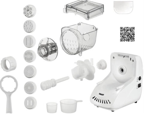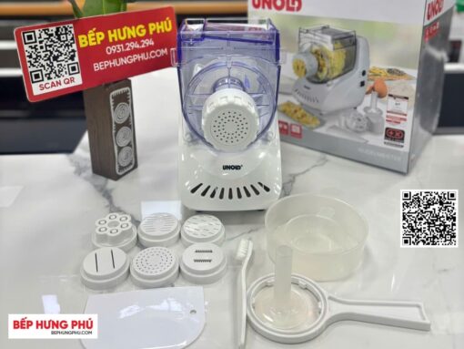 Máy làm mì bún Unold 68801 đi kèm 8 khuôn tạo hình đa dạng, giúp bạn dễ dàng làm được nhiều loại mì/ bún khác nhau theo sở thích. Có thể làm bún tươi, làm mì spaghetti, mì udon, phở, nui… Đặc biệt là có thể làm bánh quy và xúc xích với phụ kiện chuyên dụng đi kèm.