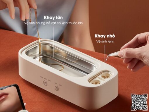 – Thiết kế 2 khay lớn và nhỏ riêng biệt: Khay lớn bằng inox 304 cao cấp chống gỉ, phù hợp để làm sạch đồ trang sức, mắt kính… Khay nhỏ có kèm giá đựng lens mắt chuyên làm sạch lens mắt, bảo an toàn vệ sinh.