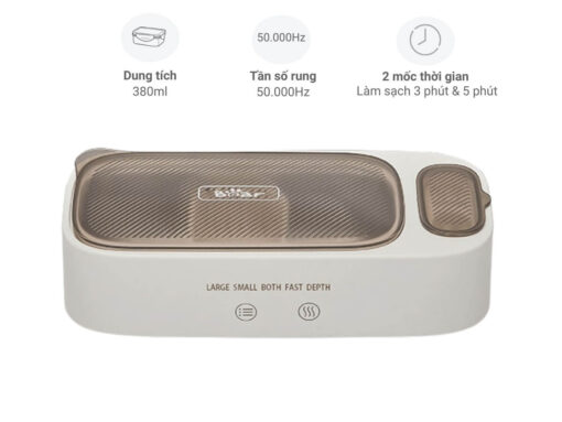 Máy làm sạch trang sức Bear SB-MR038 sử dụng công nghệ sóng siêu âm UltraSonic giúp làm sạch hiệu quả, chuyên dùng để làm sạch các đồ dùng như: đồ trang sức, kính, lens mắt, dụng cụ niềng răng, răng giả… Công suất 20W hoạt động siêu êm. Khoang chứa dung tích 380ml làm sạch được nhiều trang sức trong mỗi lần sử dụng. Đặc biệt là thiết kế 2 khay lớn và nhỏ riêng biệt, có khay vệ sinh lens mắt riêng đảm bảo an toàn vệ sinh. Có thể điều chỉnh 3 chế độ và 2 mốc thời gian làm sạch phù hợp với đồ dùng và nhu cầu khác nhau.