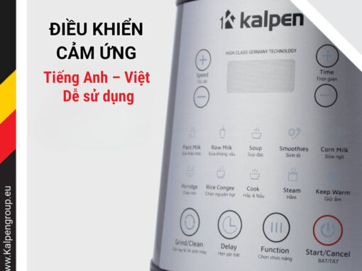 Máy làm sữa hạt Kalpen CBK-2601 trang bị hệ thống điều khiển cảm ứng hiện đại, vừa tăng thêm thẩm mỹ cho sản phẩm, vừa dễ sử dụng và thân thiện như một chiếc điện thoại thông minh. Màn hình cảm ứng cực nhanh và nhạy. Chỉ cần thao tác chạm nhẹ vào là có thể thực hiện mọi thao tác điều khiển như bật/tắt máy, chọn chương trình xay nấu, hẹn giờ, kích hoạt chức năng làm sạch máy… Đặc biệt là giao diện tiếng Anh – Việt dễ sử dụng, phù hợp với mọi người dùng.