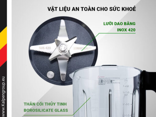 Máy làm sữa hạt Kalpen CBK-2601 trang bị lưỡi dao thiết kế 8 cánh, xoay 360 độ giúp đảo và cắt đều thực phẩm. Lưỡi dao bằng chất liệu inox 304 cao cấp, an toàn và có độ sắc bén cao, sẽ mang lại cho bạn thành phẩm sữa hạt và món cháo hay sinh tố sánh mịn hoàn hảo, không cần mất công ray lọc nhiều lần.