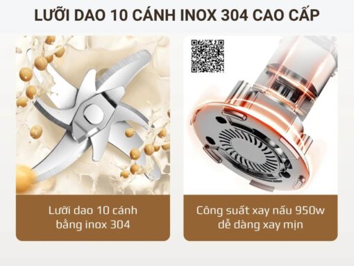 Công suất xay 150W, nấu 800W kết hợp lưỡi dao 3 tầng 10 cánh sắc bén, giúp xay khoẻ nấu nhanh