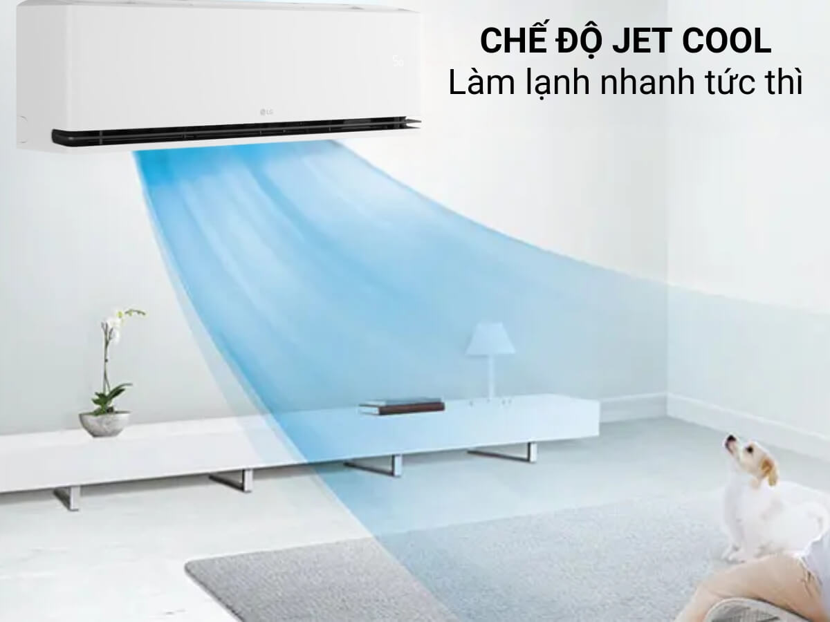 Máy lạnh LG Inverter 1.5 HP IDC12M1 trang bị chế độ làm lạnh siêu tốc Jet Cool, khi kích hoạt thì máy sẽ chạy với tốc độ quạt mạnh nhất, cho phép máy lạnh hạ nhanh 5℃ chỉ trong 3 phút, mang lại cảm giác mát lạnh ngay tức thì mà không phải chờ lâu.
