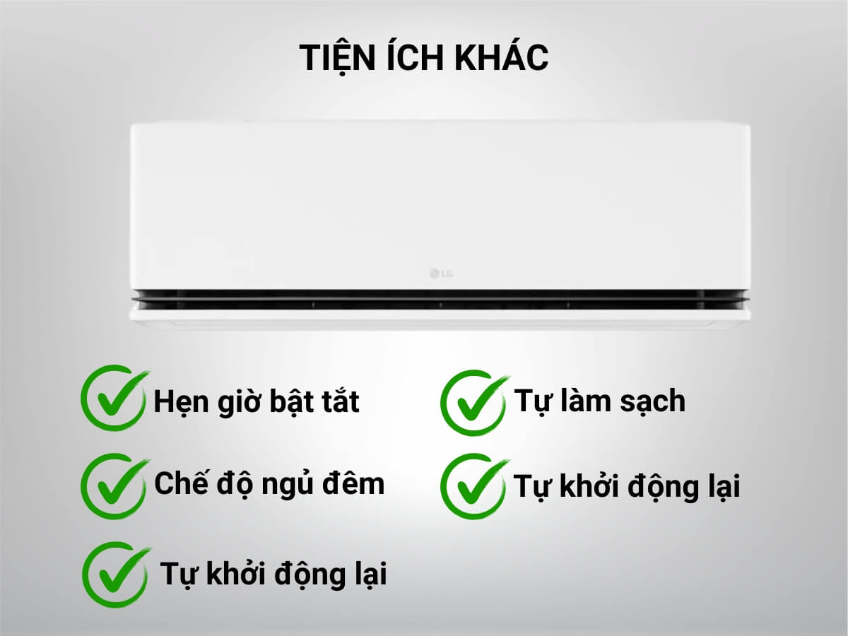 – Tự khởi động lại khi có điện: Khi đang sử dụng mà có sự cố mất điện, thì khi có điện trở lại, máy sẽ tự khởi động theo đúng cài đặt trước đó, đem đến sự tiện dụng tối đa cho người dùng.