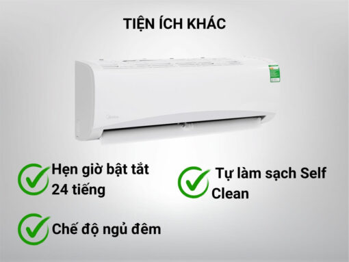 Máy lạnh Midea 1 HP MSAFII-10CRN8 với công suất 1 HP – 9000BTU (1 ngựa), đáp ứng tốt nhu cầu làm mát cho phòng khách, phòng ngủ với diện tích <15m². Chức năng làm lạnh siêu tốc Turbo giúp làm lạnh nhanh chóng tức thì. Bên cạnh đó là bộ lọc HD giúp lọc bụi hiệu quả. Máy còn có chế độ ngủ đêm vận hành êm ái, nhẹ nhàng, tính năng hẹn giờ, tự làm sạch, cung cấp tiện lợi tối đa cho người dùng.