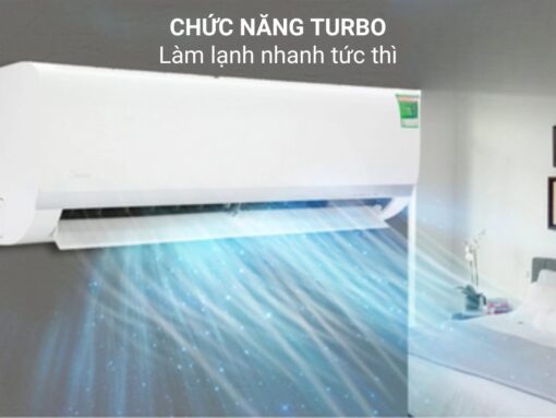 Máy lạnh Midea 2 HP MSAFII-18CRN8 trang bị chức năng làm lạnh siêu tốc Turbo, giúp căn phòng nhanh chóng đạt được nhiệt độ cài đặt, mang lại cảm giác mát lạnh ngay tức thì mà không phải chờ lâu.