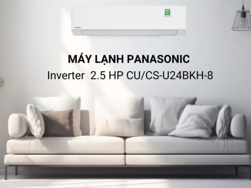 Máy lạnh Panasonic Inverter 2.5 HP CU/CS-U24BKH-8 với công suất 2.5 HP – 20.800 BTU (2.5 ngựa), đáp ứng tốt nhu cầu làm mát cho phòng khách, phòng ngủ với diện tích 30 – 40m². Công nghệ Inverter cùng chế độ ECO A.I tiết kiệm điện hiệu quả. Chức năng làm lạnh siêu tốc iAuto-X giúp làm lạnh nhanh chóng tức thì. Công nghệ nanoeX lọc khí – khử mùi, và nanoe-G lọc bụi mịn PM2.5, mang đến bầu không khí trong lành, sạch sẽ. Đặc biệt là cảm biến độ ẩm thông minh, giúp kiểm soát độ ẩm ở mức lý tưởng, tránh quá khô hay quá ẩm cho căn phòng. Máy còn có tính năng hẹn giờ bật/tắt, tự làm sạch, tự khởi động lại khi có điện, điều khiển trên smartphone thông qua ứng dụng, cung cấp tiện lợi tối đa cho người dùng.