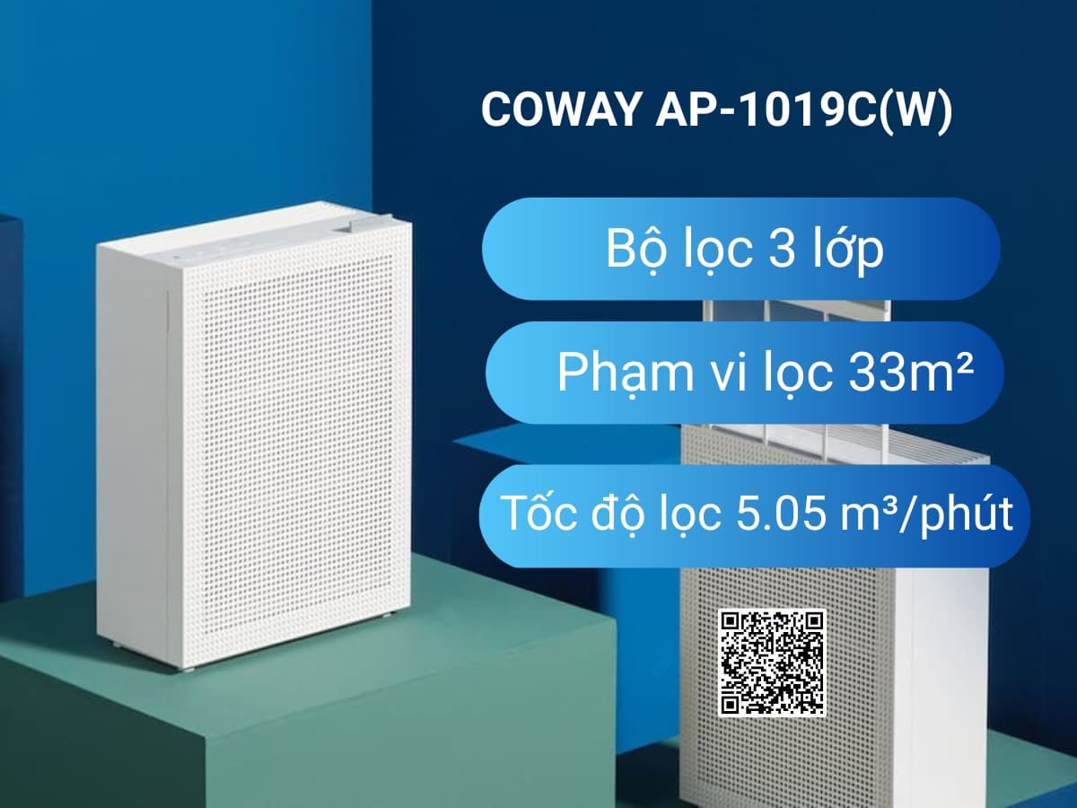 Máy lọc không khí Coway AP-1019C(W) thiết kế nhỏ gọn, sang trọng, phù hợp với phòng ngủ, phòng làm việc, phòng khách… Bộ lọc 3 lớp gồm màng lọc thô – màng lọc khử mùi – màng lọc Green HEPA™, mang đến khả năng lọc không khí hiệu quả, loại bỏ đến 99.99% bụi mịn 0.01 micron. Máy có 3 tốc độ gió, chế độ Auto và Silent, có thể điều chỉnh tuỳ nhu cầu sử dụng.