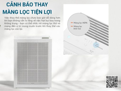 Máy lọc không khí Coway AP-1019C(W) được trang bị hệ thống đèn báo nhắc người dùng khi cần thay thế màng lọc khử mùi hoặc màng HEPA, giúp duy trì hiệu quả lọc và kéo dài tuổi thọ máy một cách tối ưu.