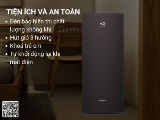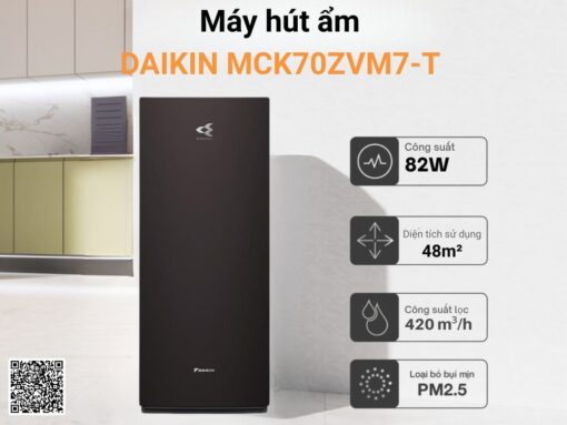 Máy lọc không khí Daikin MCK70ZVM7-T trang bị hệ thống lọc tiên tiến kết hợp công nghệ Twin Streamer và Ion Plasma, không chỉ lọc sạch bụi bẩn mà còn khử mùi, diệt khuẩn và tạo ẩm hiệu quả. Công suất hoạt động mạnh mẽ 82W, công suất lọc không khí 420 m³/h và diện tích làm sạch đến 48m². Máy có nhiều chế độ hoạt động thông minh, 4 mức cài đặt tốc độ lọc giúp bạn dễ dàng tuỳ chỉnh theo nhu cầu. Ngoài ra còn có hệ thống cảm biến bụi mịn PM2.5, mùi, độ ẩm, nhiệt độ giúp tối ưu hiệu quả lọc khí, và đèn báo chất lượng không khí giúp bạn dễ dàng theo dõi tình trạng không khí trong phòng. Hệ thống điều khiển nút nhấn điện tử hiện đại, dễ sử dụng.