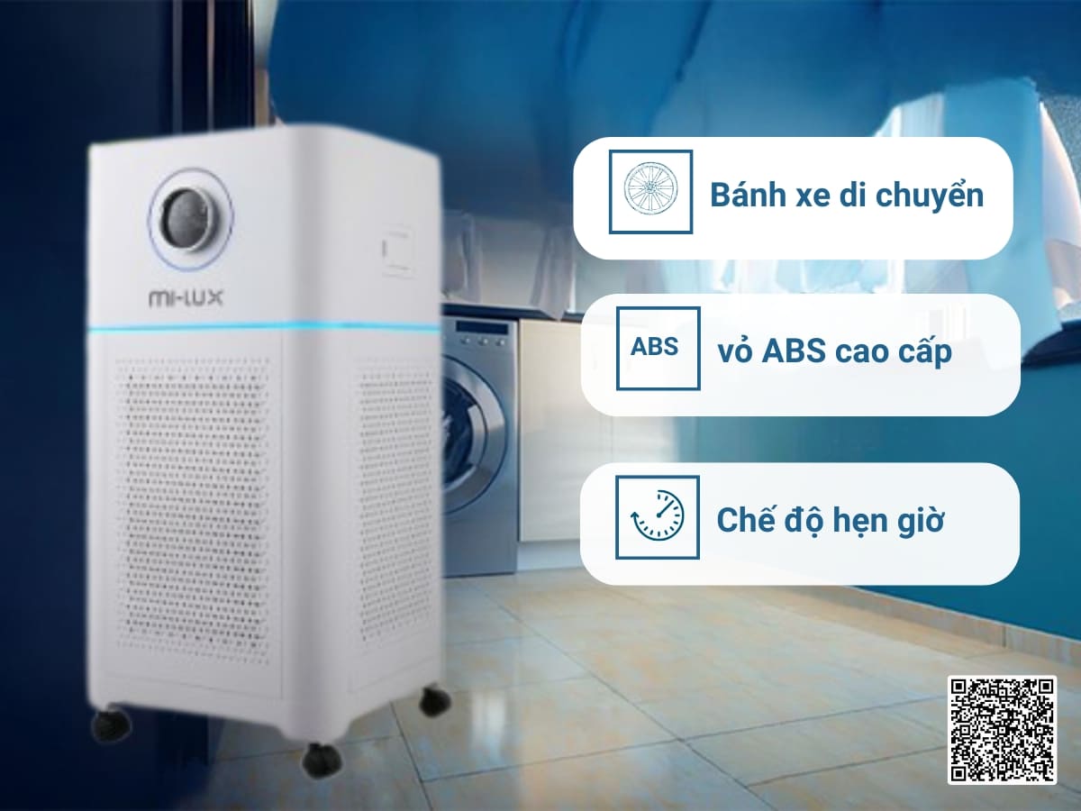 - Bánh xe di chuyển 360 độ tiện lợi Với trọng lượng 14kg, việc di chuyển máy giữa các không gian lớn như phòng khách, phòng ngủ hay văn phòng có thể sẽ bất tiện. Hiểu được điều đó, Mi-lux đã trang bị hệ thống bánh xe đa hướng 360 độ, cho phép bạn dễ dàng đẩy máy đến bất kỳ vị trí nào mà không cần phải mang vác nặng nhọc, tối ưu hóa hiệu suất lọc cho toàn bộ căn nhà.