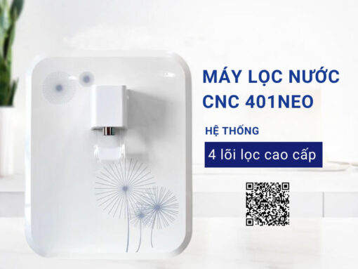 Máy lọc nước CNC 401NEO thiết kế để bàn nhỏ gọn, đẹp mắt, gam màu trắng thanh lịch, đẹp mắt. Công nghệ lọc Nano với hệ thống 4 lõi lọc cao cấp, lọc sạch cặn bẩn, tạp chất, vi khuẩn trong nước, tạo nước uống sạch tinh khiết có thể uống trực tiếp mà không cần đun nấu lại. Công suất lọc lớn 70 – 90L/H, đáp ứng đầy đủ nhu cầu nước sạch cho cả gia đình.