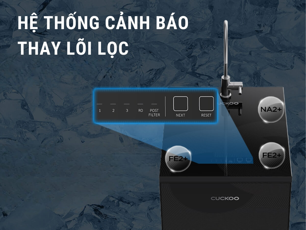 Máy lọc nước Cuckoo CP-CRPV1101S/BKVNCV còn có tính năng tự động cảnh báo thay thế lõi lọc thông minh. Đèn cảnh báo được thiết kế ngay mặt trên thân máy, trong tầm mắt người dùng, sẽ tự động cảnh báo khi lõi lọc đến hạn cần thay thế. Nhờ vậy, bạn không cần phải ghi nhớ thời gian thay lõi cũng như mở máy ra để kiểm tra lõi mà sẽ được cảnh báo tự động, rất tiện lợi.