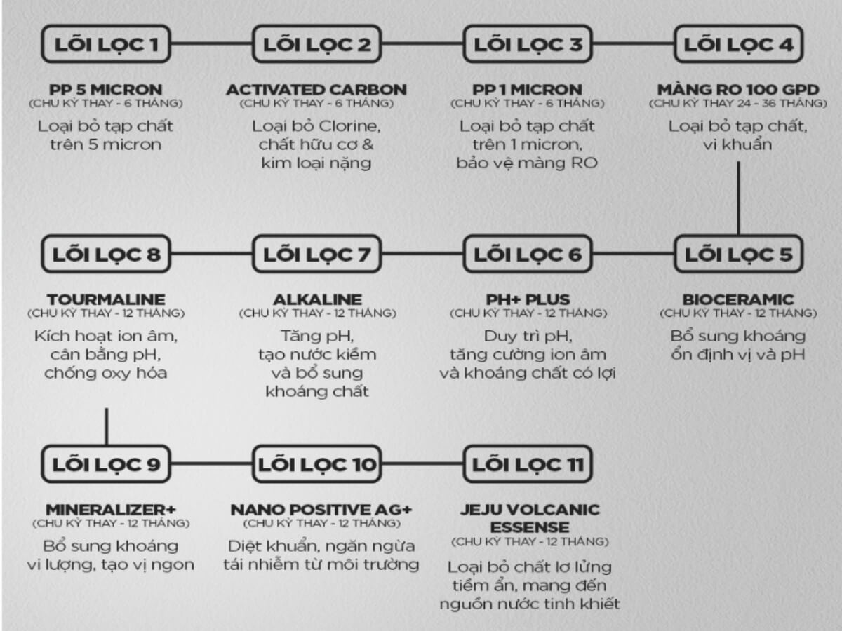 – Lõi số 11 (Jeju Volcanic Essence): Loại bỏ chất lơ lửng tiềm ẩn, mang đến nguồn nước tinh khiết nhất.