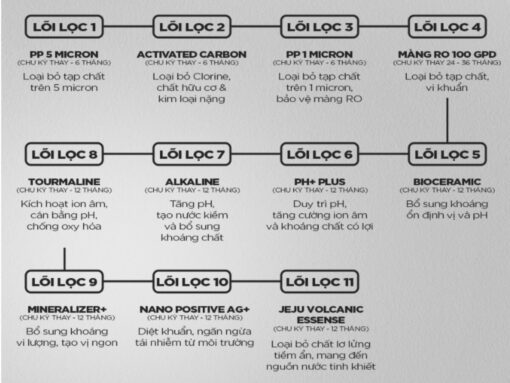 – Lõi số 11 (Jeju Volcanic Essence): Loại bỏ chất lơ lửng tiềm ẩn, mang đến nguồn nước tinh khiết nhất.