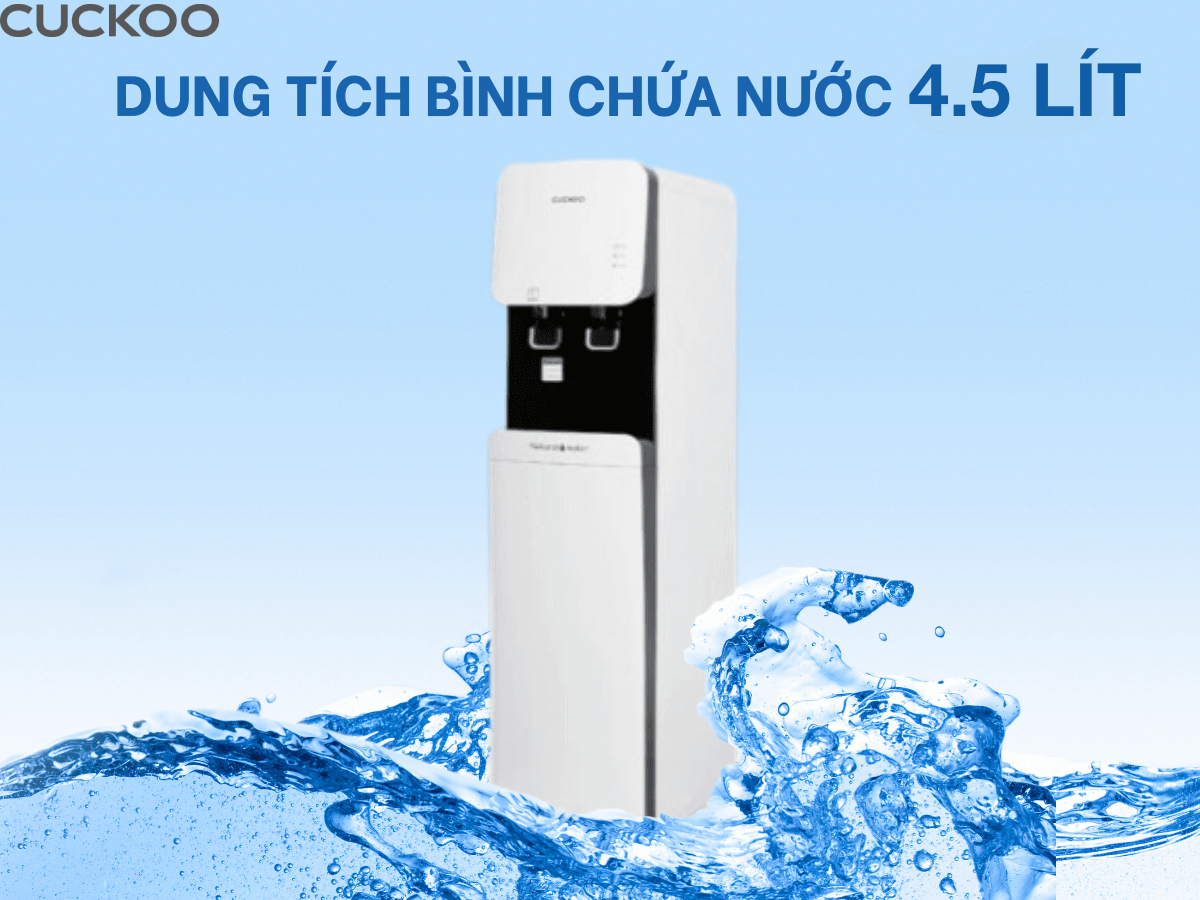 Máy lọc nước Cuckoo CP-FN601SW thiết kế gồm 2 bình chứa nước độc lập. Trong đó, bình chứa nước nóng có dung tích 2.5 lít, bình chứa nước lạnh 2 lít., tổng dung tích bình chứa 4.5 lít. Dung tích này đảm bảo khả năng lưu trữ và cung cấp nguồn nước sạch liên tục, đầy đủ cho gia đình. Bạn sẽ không cần lo lắng về việc máy không cung cấp đủ nước hoặc gián đoạn gây bất tiện cho gia đình. Đặc biệt, nước nóng và lạnh được cung cấp liên tục, không mất thời gian chờ đợi để được sử dụng nước nóng lạnh.