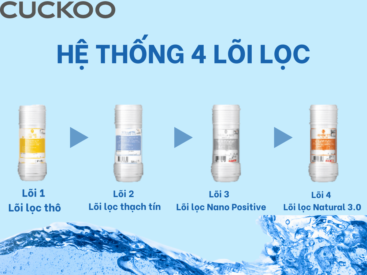 Hệ thống 4 lõi lọc trang bị trên máy lọc nước Cuckoo CP-FN601SW bao gồm: