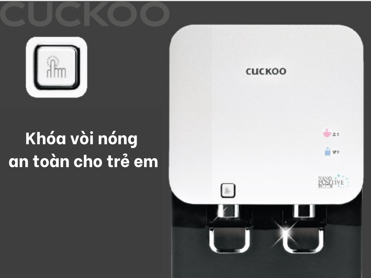 Máy lọc nước nóng lạnh có chế độ nước nóng tiện lợi, song cũng tiềm ẩn nguy cơ gây bỏng nước nếu sử dụng không an toàn, nhất là với gia đình có con nhỏ. Hiểu được khó khăn này của người dùng, Cuckoo đã trang bị cho chiếc máy lọc nước CP-FN601SW tính năng khóa vòi nóng an toàn. Sau khi sử dụng nước nóng, bạn có thể chủ động khoá vòi nước nóng, đảm bảo trẻ không thể tự ý lấy nước nóng gây ra các sự cố bỏng nguy hiểm. Không chỉ tiện lợi, máy lọc nước Cuckoo CP-FN601SW còn tăng cường bảo vệ an toàn cho các thành viên nhí trong gia đình bạn.