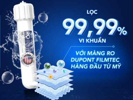 Công nghệ lọc RO còn đem đến hiệu suất lọc cao và cho tỷ lệ thu hồi nước tinh khiết lớn, giảm lượng nước thải, giúp tiết kiệm nước hiệu quả.