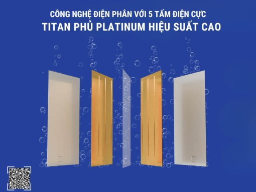 Công nghệ điện phân với 5 tấm điện cực Titan phủ Platinum hiệu suất cao