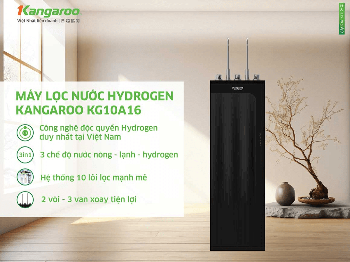 Với hệ thống 10 lõi lọc, máy lọc nước Kangaroo KG10A16 mang đến hiệu suất lọc cao vượt trội giúp nhân đôi hiệu quả lọc, giúp loại bỏ cặn bẩn, các chất hữu cơ và mùi khó chịu của nước và tái tạo nguồn nước tinh khiết. Đặc biệt là bổ sung Hydrogen giúp tăng cường sức khoẻ.