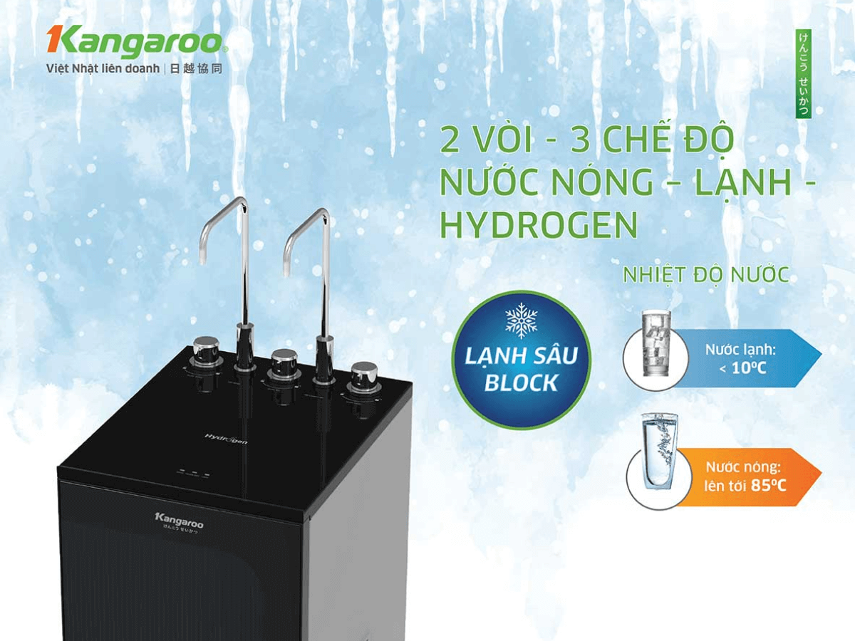 Máy lọc nước Kangaroo KG10A16 cung cấp 3 chế độ nước nóng – lạnh – thường với công suất lọc 17 lít/giờ đáp ứng đầy đủ nhu cầu dùng nước sạch cho cả gia đình. Công nghệ Block giúp làm lạnh sâu, cho nước mát lạnh sảng khoái, nước nóng 80-90 độ C tiện lợi để pha trà, cà phê, pha mì… mà không cần đun sôi nước.