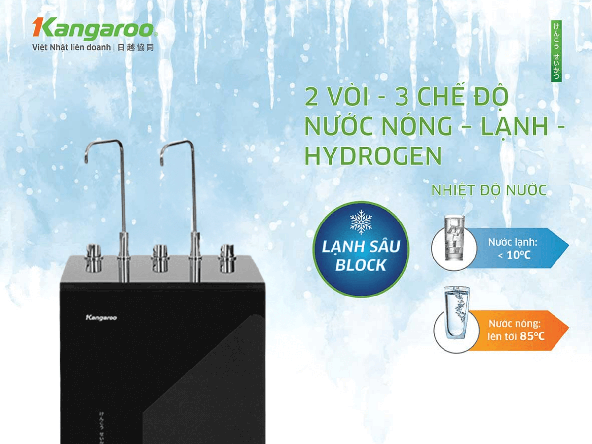 Máy lọc nước Kangaroo KG10A17 được thiết kế 2 vòi lấy nước tiện lợi. Cùng với 3 chế độ nước nóng – lạnh – thường luôn sẵn sàng cho mọi nhu cầu sử dụng nước của cả gia đình.