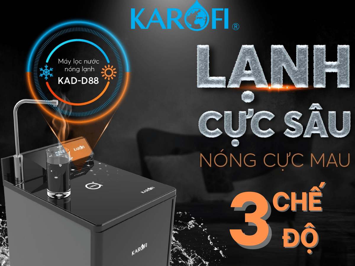 Máy lọc nước Karofi KAD-D88 được trang bị 3 chế độ nước gồm nước thường – nước nóng và nước lạnh, đáp ứng đầy đủ về nhu cầu dùng nước sạch cho cả gia đình.