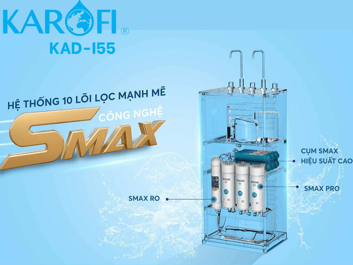Công nghệ Smax RO nguyên khối chuẩn mỹ hỗ trợ nâng cao hiệu suất lọc của máy lọc nước Karofi KAD-I55, tăng tốc độ lọc nước lên mức cao nhất. Nhờ công nghệ này mà tỷ lệ thu hồi nước tinh khiết lên đến 60%.
