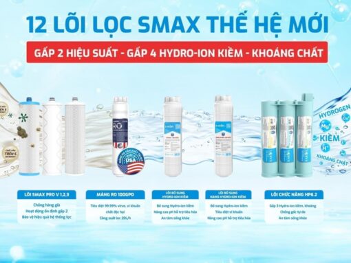- Đối với nhóm lõi lọc Smax Pro V, thời gian sử dụng khuyến cáo tối đa 12 tháng.