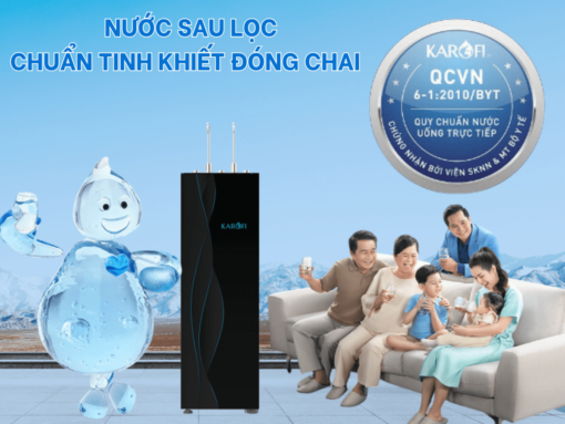 Nguồn nước sau lọc từ máy lọc nước nóng lạnh Karofi KAD-X68 đạt chuẩn nước uống tinh khiết đóng chai QCVN 6-1:2010 BYT do Viện Sức khỏe nghề nghiệp & Môi trường – Bộ Y Tế công nhận.