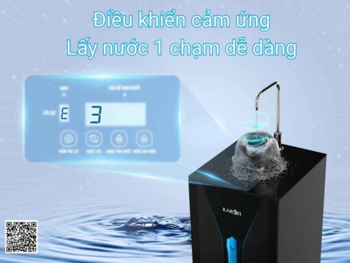 Máy lọc nước Karofi KAE-S65 còn ghi điểm cộng với thiết kế hệ thống điều khiển cảm ứng hiện đại, sử dụng dễ dàng, tiện lợi. Chỉ cần thao tác chạm nhẹ để chọn loại nước cũng như lấy nước nhanh chóng, dễ dàng.