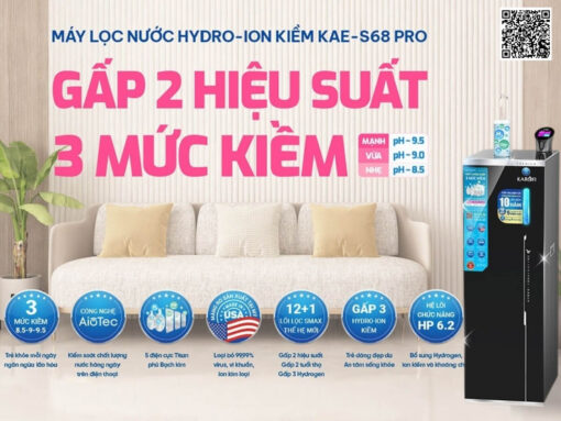 Máy lọc nước Karofi KAE-S68 Pro thiết kế tủ đứng với mặt kính tràn viền sang trọng. Máy được trang bị đến 3 công nghệ lọc: lọc RO kết hợp lọc UF và điện phân tạo nước ion kiềm tốt cho sức khỏe. Công nghệ lọc RO với hệ thống 12 lõi lọc, màng lọc RO Purifim 100 GPD Mỹ cho hiệu suất lọc vượt trội 20 L/h, tuổi thọ lõi đến 3 năm, có thể lọc sạch 99,99% chất độc hại trong nước, đem lại nước sạch tinh khiết đảm bảo an toàn sức khoẻ. Công nghệ lọc điện phân với 5 tấm điện cực tạo nước giàu Hydrogen, ion-kiềm và khoáng chất, hỗ trợ chống oxy hoá và tăng cường sức khoẻ.
