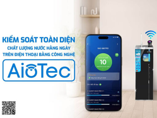 Karofi KAE-S68 Pro còn được tích hợp công nghệ AioTec thông minh. Công nghệ này cho phép giám sát máy lọc nước từ xa trên chính thiết bị di động của bạn. Thông qua công nghệ này, bạn có thể: quản lý tình trạng của máy, xác thực hàng chính hãng, nhận cảnh báo thay lõi tự động, theo dõi độ sạch của nước, gửi yêu cầu bảo hành… Với AioTec, bạn có thể yên tâm giám sát máy từ bất cứ đâu và bất cứ lúc nào.