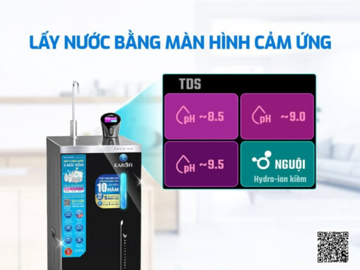 Máy lọc nước Karofi KAE-S68 Pro còn ghi điểm cộng với thiết kế hệ thống điều khiển màn hình cảm ứng hiện đại, sử dụng dễ dàng, tiện lợi. Chỉ cần thao tác chạm nhẹ để chọn loại nước cũng như lấy nước nhanh chóng, dễ dàng.