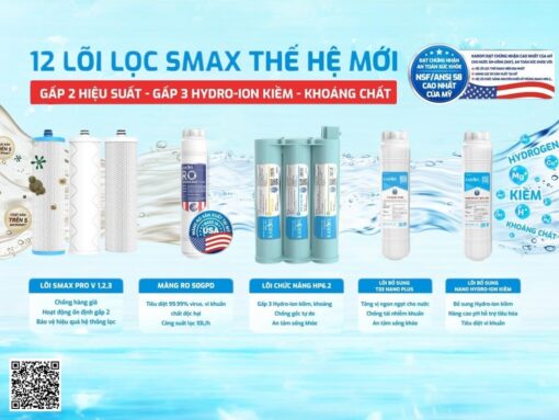 - Đối với nhóm lõi lọc thô Smax Pro V, thời gian sử dụng khuyến cáo tối đa 12 tháng.