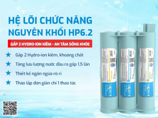 – Lõi Nano Hydro-ion kiềm: bổ sung Hydrogen hoạt hóa bằng phương pháp tự nhiên, bổ sung các khoáng chất cần thiết. Nâng cao pH, hỗ trợ trung hòa hàm lượng axit dư và loại bỏ gốc tự do có hại trong cơ thể.