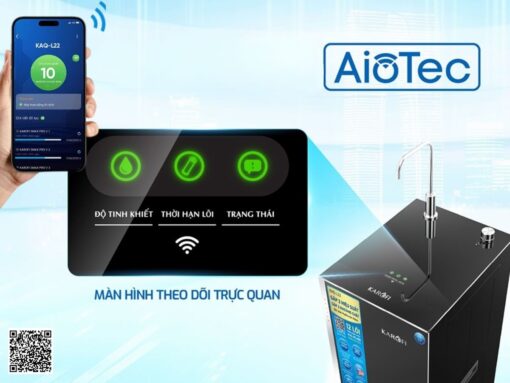 Máy lọc nước Karofi KAQ-M22 còn được tích hợp công nghệ AioTec thông minh. Công nghệ này cho phép giám sát máy lọc nước từ xa trên chính thiết bị di động của bạn. Thông qua công nghệ này, bạn có thể: quản lý tình trạng của máy, xác thực hàng chính hãng, nhận cảnh báo thay lõi tự động, theo dõi độ sạch của nước, gửi yêu cầu bảo hành… Với AioTec, bạn có thể yên tâm giám sát máy từ bất cứ đâu và bất cứ lúc nào.