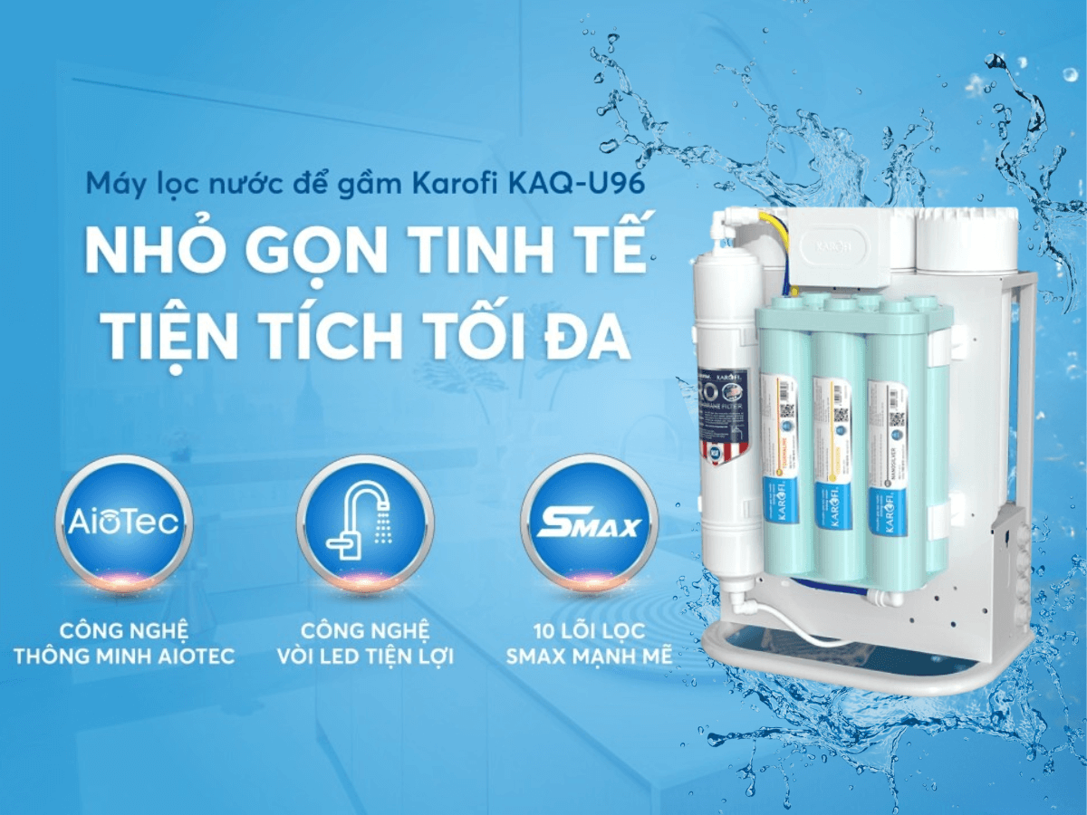 Máy lọc nước Karofi KAQ-U96 sử dụng công nghệ lọc RO tiên tiến, giúp loại bỏ hiệu quả các tạp chất, vi khuẩn, ion kim loại nặng và các chất độc hại khỏi nước, tạo ra nguồn nước tinh khiết và an toàn cho sức khỏe. Không chỉ cung cấp nước sạch, với thiết kế không tủ siêu mỏng gọn, chiếc máy lọc nước này còn tối ưu không gian hiệu quả.